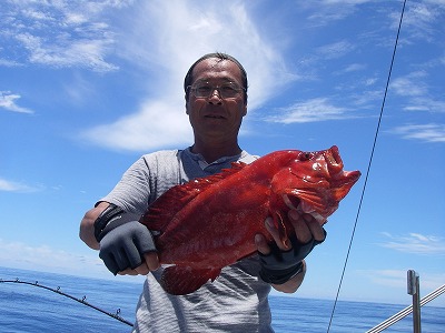 その後はあまりの暑さにジギングをあきらめて、浅場へ移って根魚狙いへ。