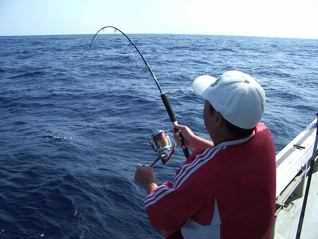 事前に依頼されていた活餌のムロアジを持って、