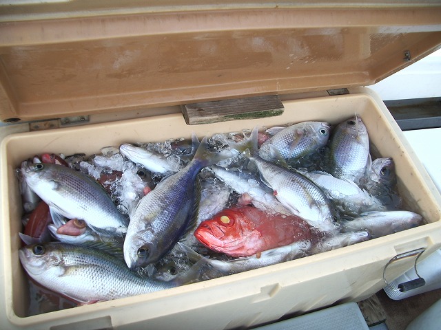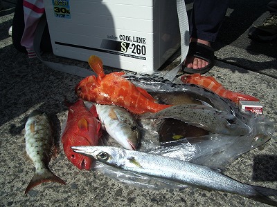 アカハタ、バラハタ、キツネフエフキ、シロダイ、カマス。